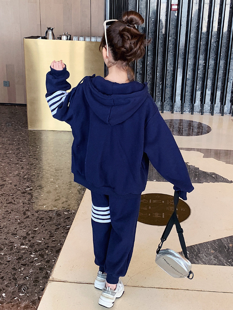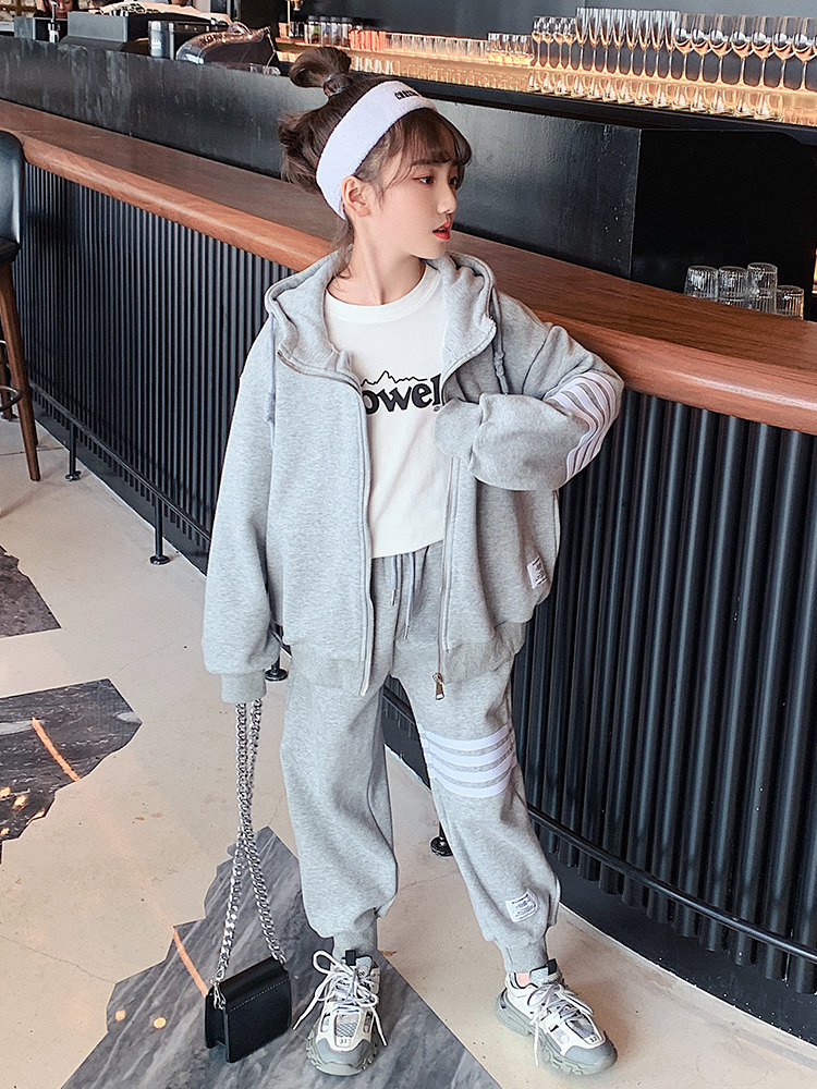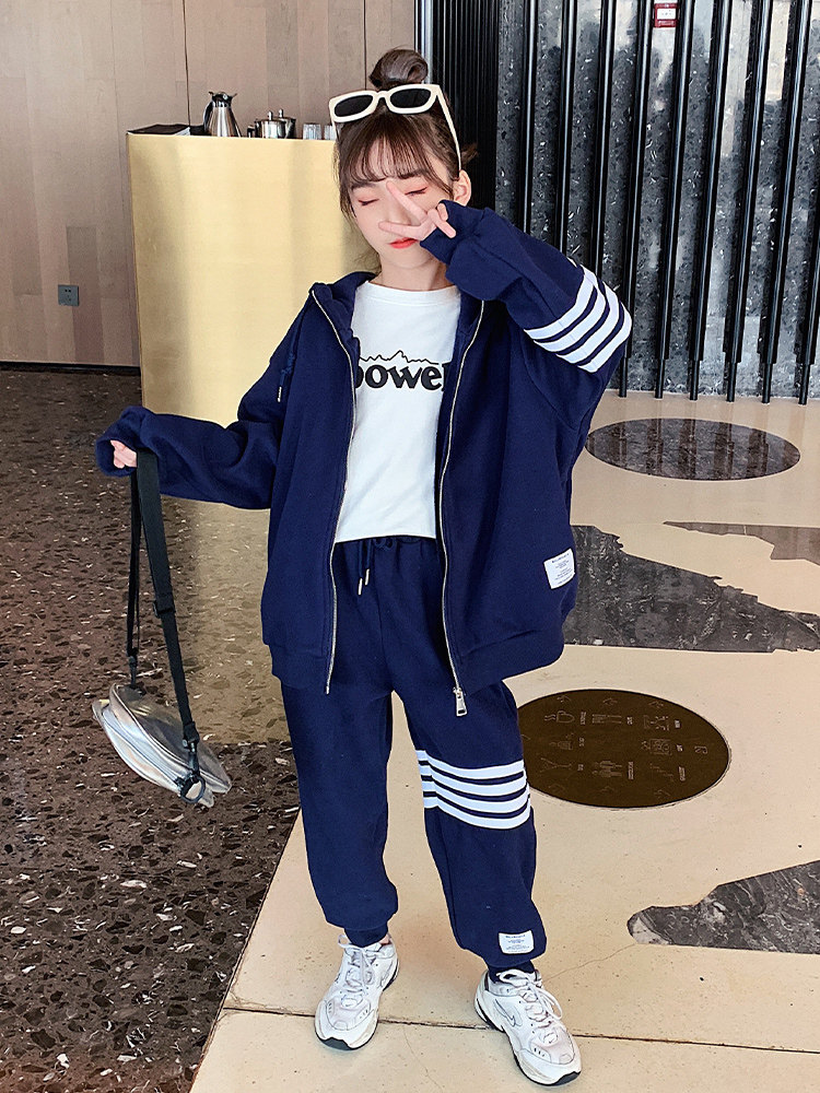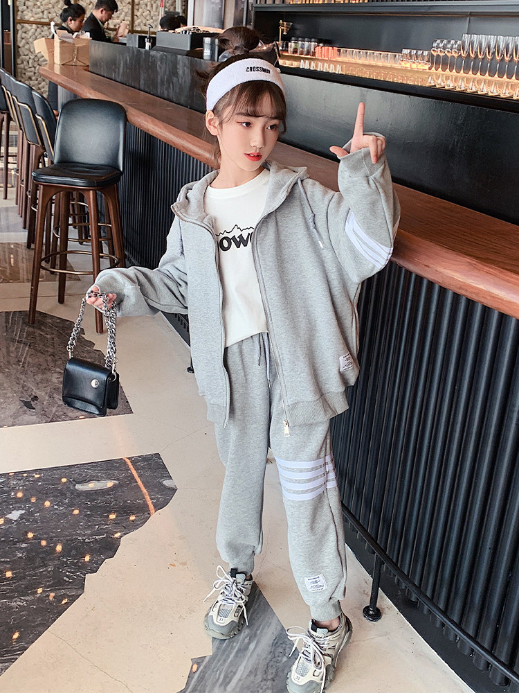 Girls Autumn Suit Spring and Autumn 2022 New Korean Version Fashion Sports Loose Medium Big Kids Casual HoodEd jacket tide