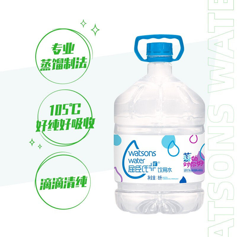 Watson's mineral-added distilled water 8L*2 barrels* 3 boxes total 6 large barrels of water drinking water non-pure water