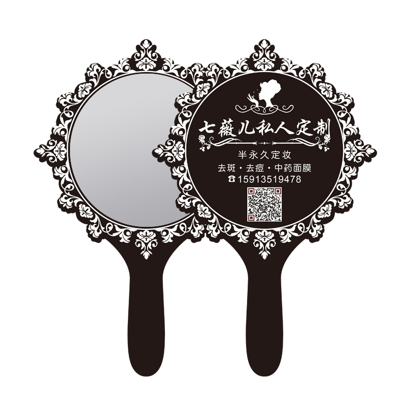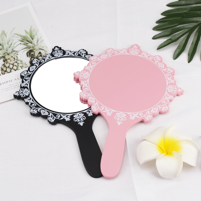 Beauty salon mirror custom logo embroidery shop private custom handheld handle mirror large band handle