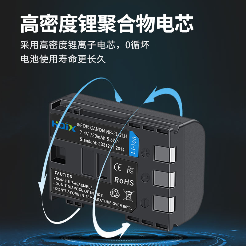 HQIX is suitable for Canon EOS 350D 400D MV900 digital camera NB-2L battery dual charger