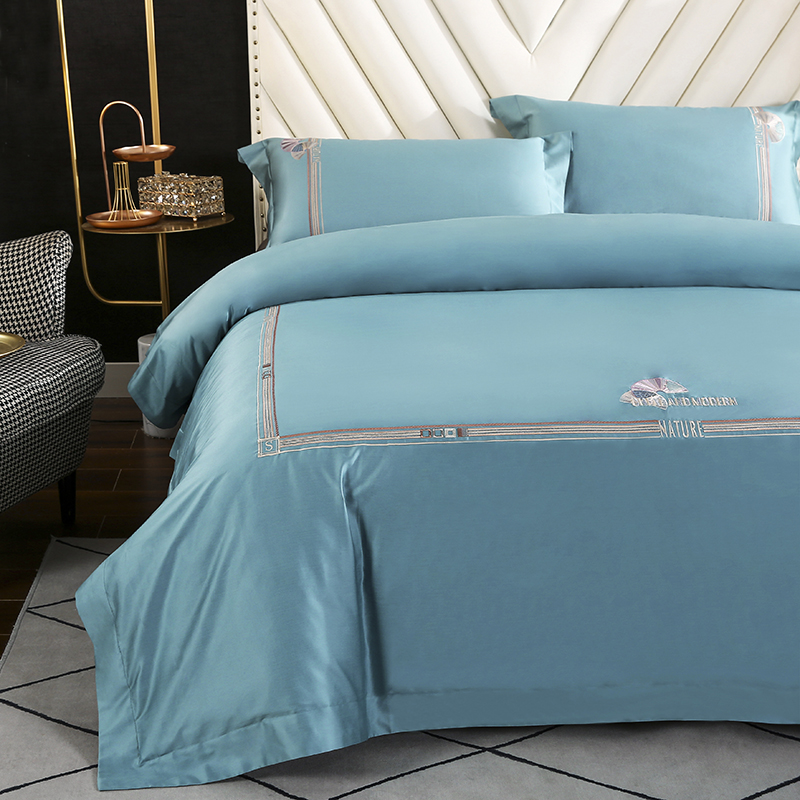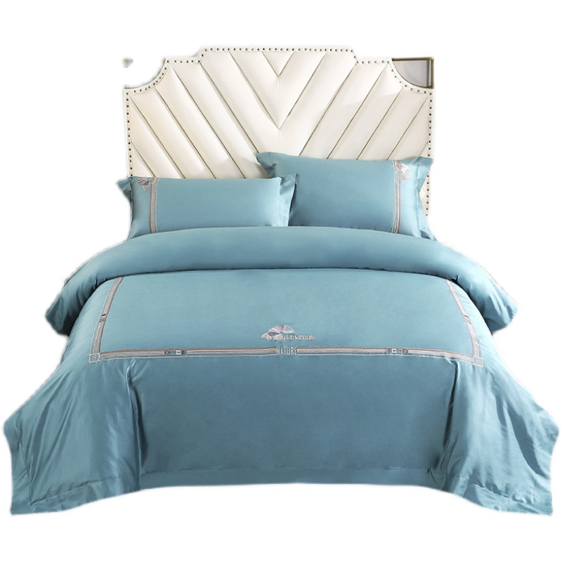 Text English 100s long-staple cotton satin embroidery pure cotton bed four-piece set double cotton four seasons universal - Taobao