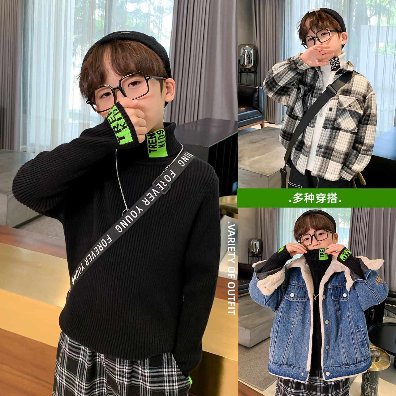 (anti-season flush) left west boy high collar sweater boy 2021 new children knit thickened foreign palate