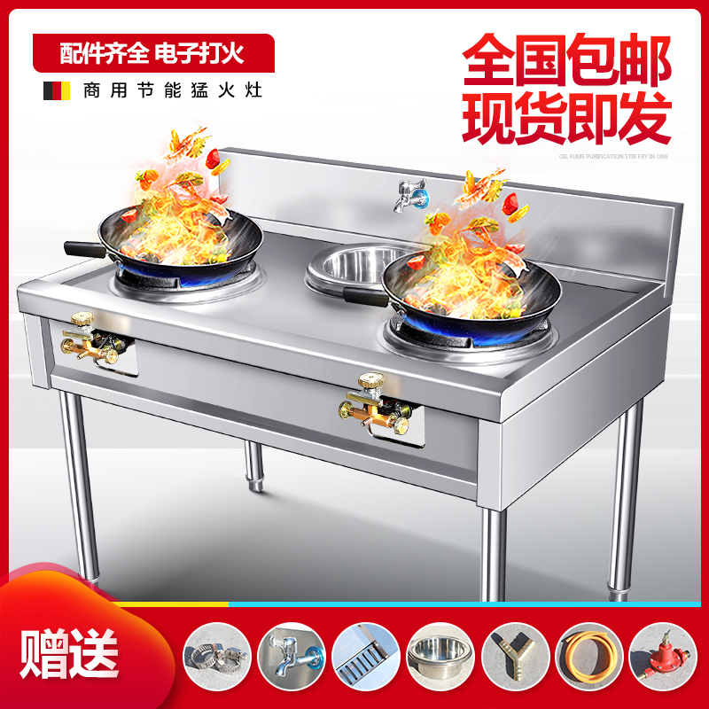 Menghuo stove commercial stainless steel stove gas liquefied gas stove single and double mouth gas stove rack kitchen restaurant gas stove frying stove