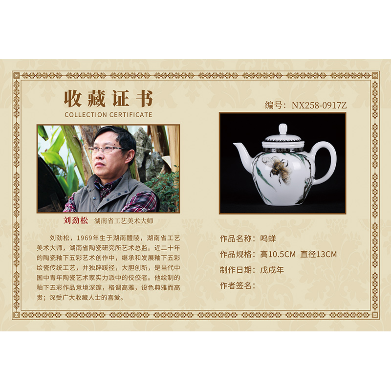 High-end tea instrumental Chinese ceramic art master Liu Jinsong's hand-painted tea tea tea teapot tinnitus NX258