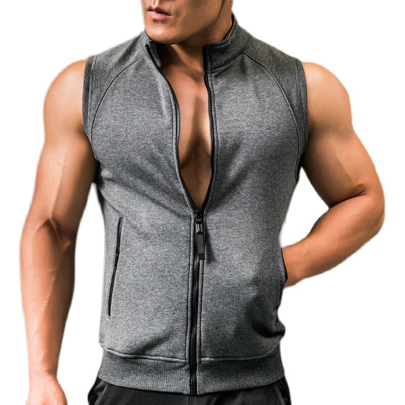 Iron wolf sports fitness vest men's autumn and winter vest plus velvet warm zipper cardigan training sleeveless vest
