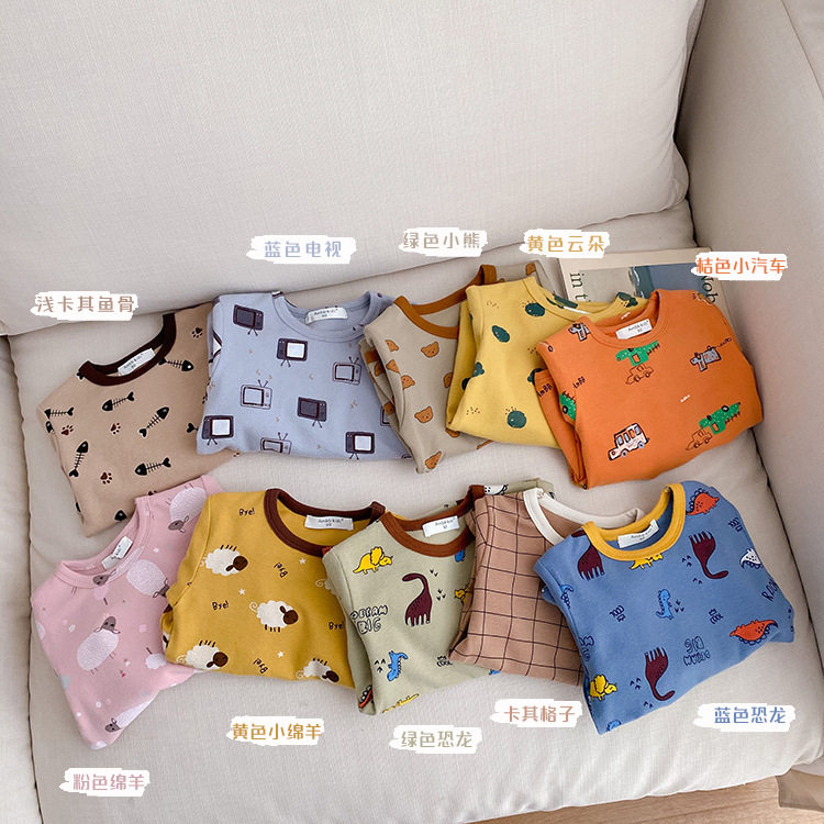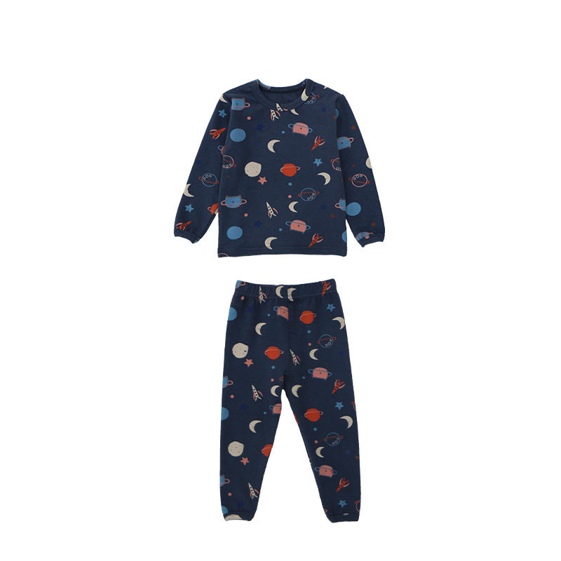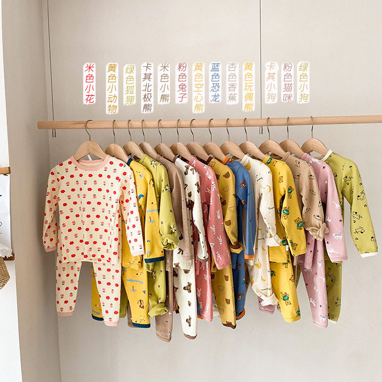 Children's pajamas set autumn and winter new round neck underwear cartoon boys and girls home clothes autumn clothes long johns baby cotton