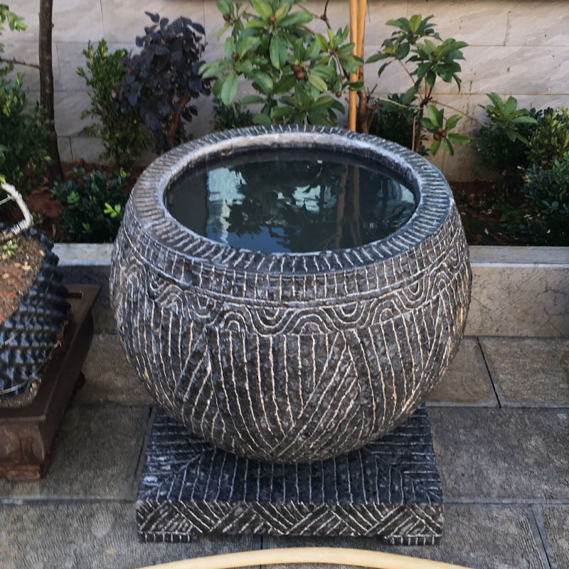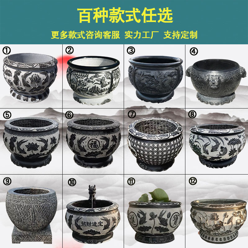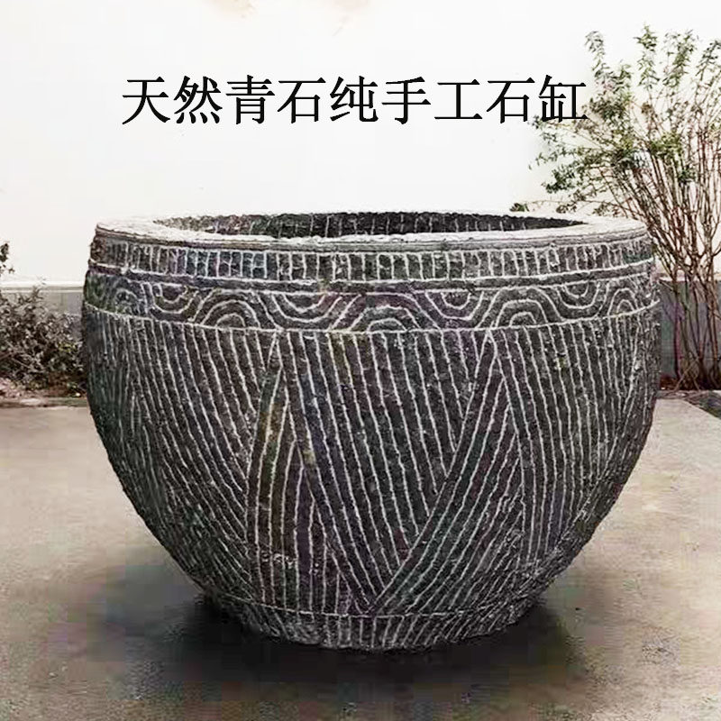 Stone Carving Fish Tank Flower Pot Green Stone Courtyard Fish Tank Stone Water Cylinder Stone Vat fish seed Flowers Stone Round Vat Outdoor Stone Basin