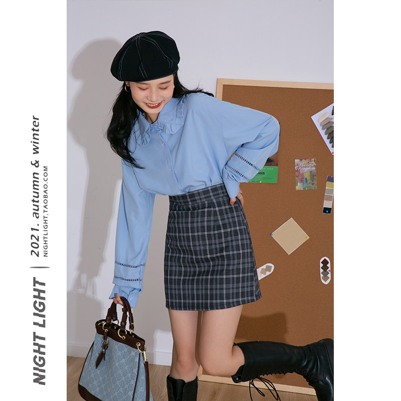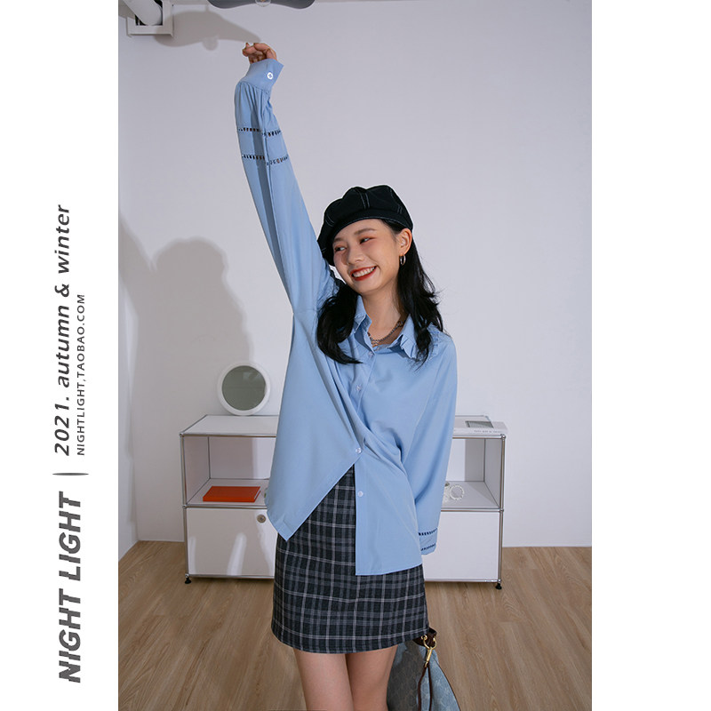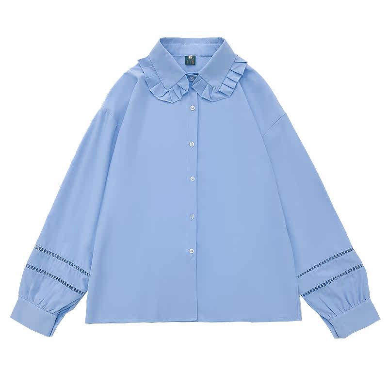 Luminous Small Fresh Gentle Lotus Leaf Doll Collar Hollow Shirt Female Solid Color Loose Long Sleeve 2022 Casual Top