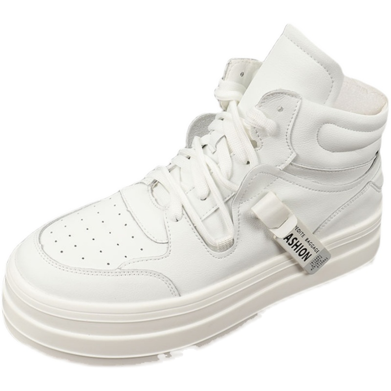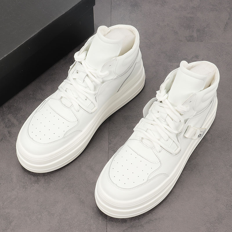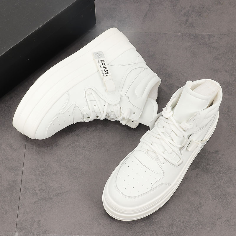 European station thick soles high-help shoes autumn trend of hundred-and-air mats increased male shoes white fashion casual boots