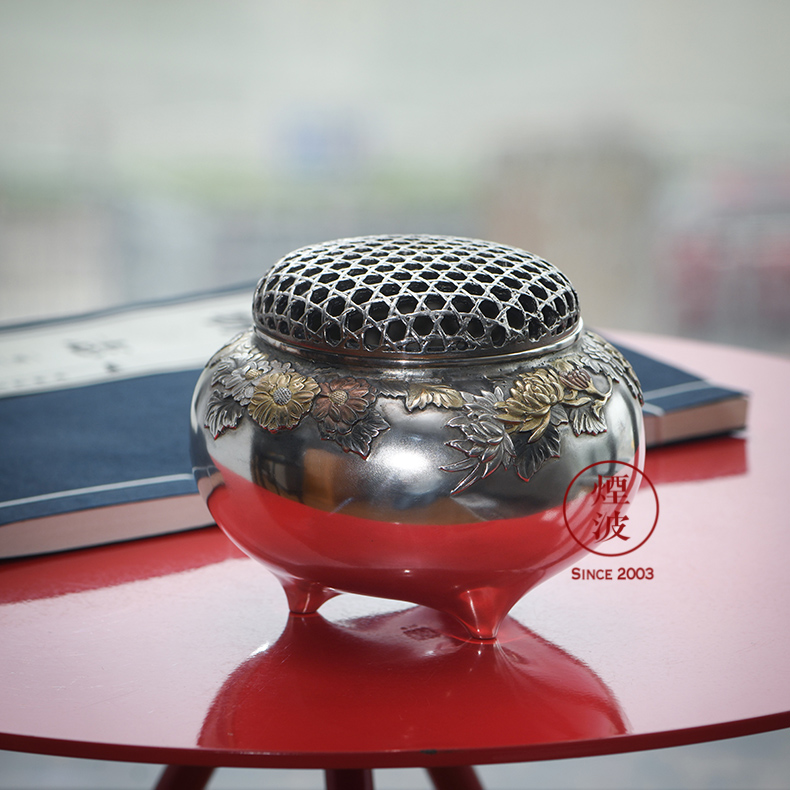 Japanese silverware rich mountain high okao Qingfeng for pure silver chamomile silver incense stove smoked incense stove smoke wave-Taobao