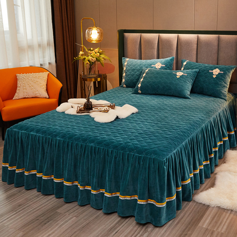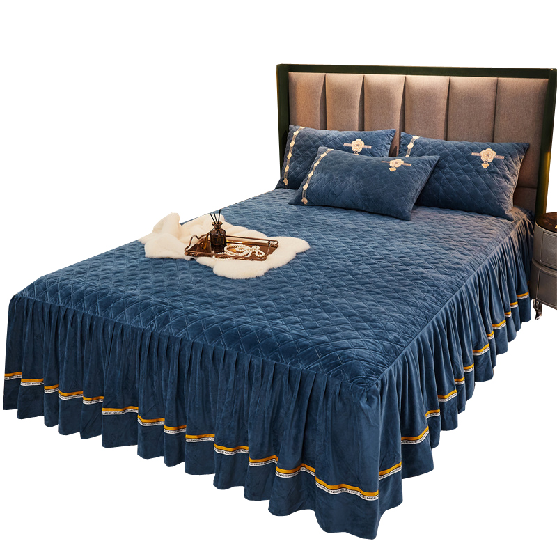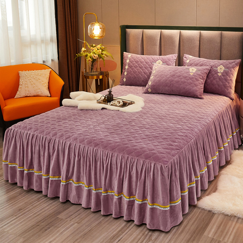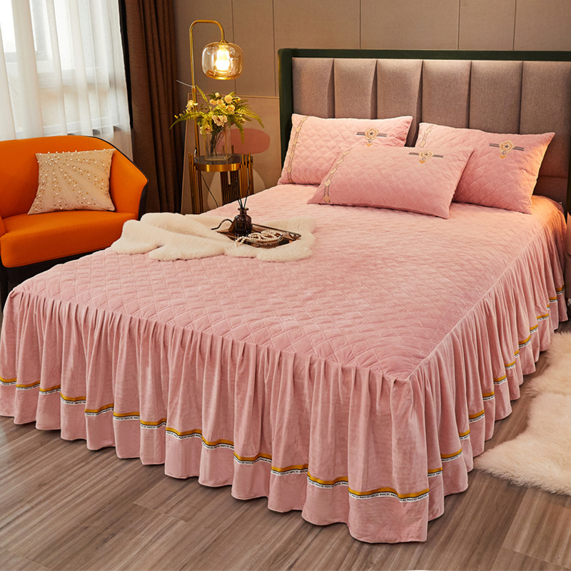 Antistatic crystal suede thickened bed dress Milk Suede Cotton Bed Cover Coral Flannel Bed Cover Bed Cover Four Pieces