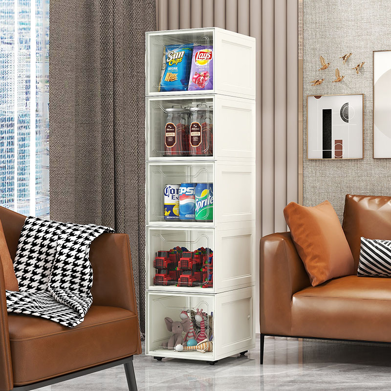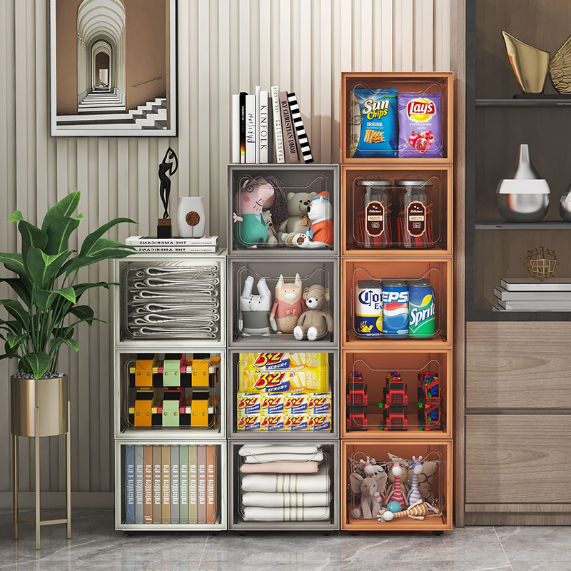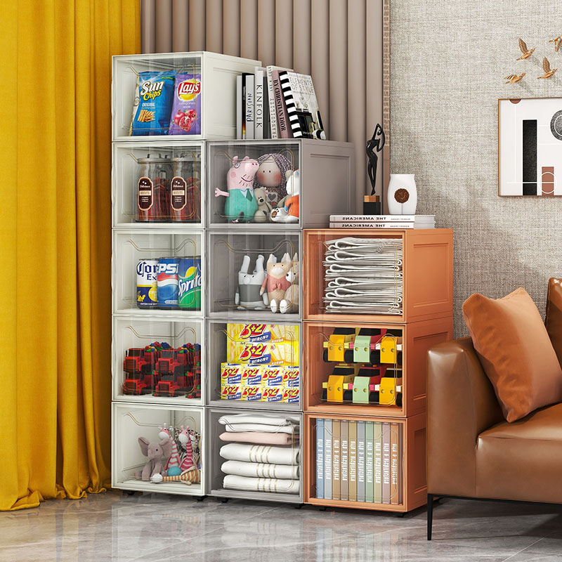 Transparent Containing Box Home Plastic Wardrobe Clothes Finishing Box Side Open Door With Wheel Book Toy Storage Box Living Room