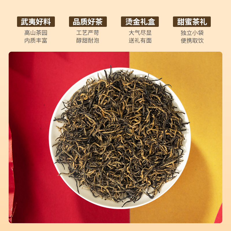 Xiangyuan Tea Gold Eyebrow Black Tea Tea Tea-teed with Intense Aroma Companion Gift box Authentic Gold Sprout Pouch Black Tea 4 * 24 Bag