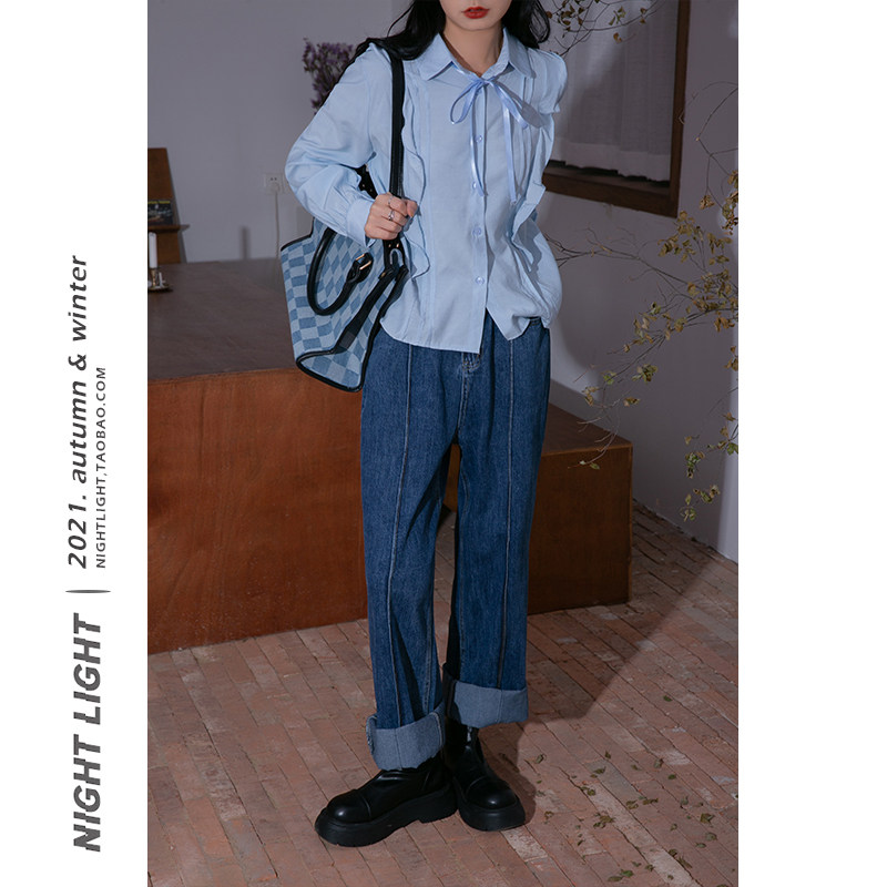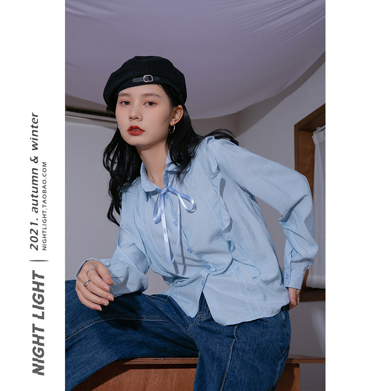 Luminous French ruffled lace-up shirt women's 2022 winter new retro literary temperament casual all-match top