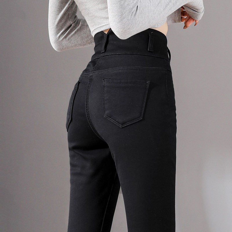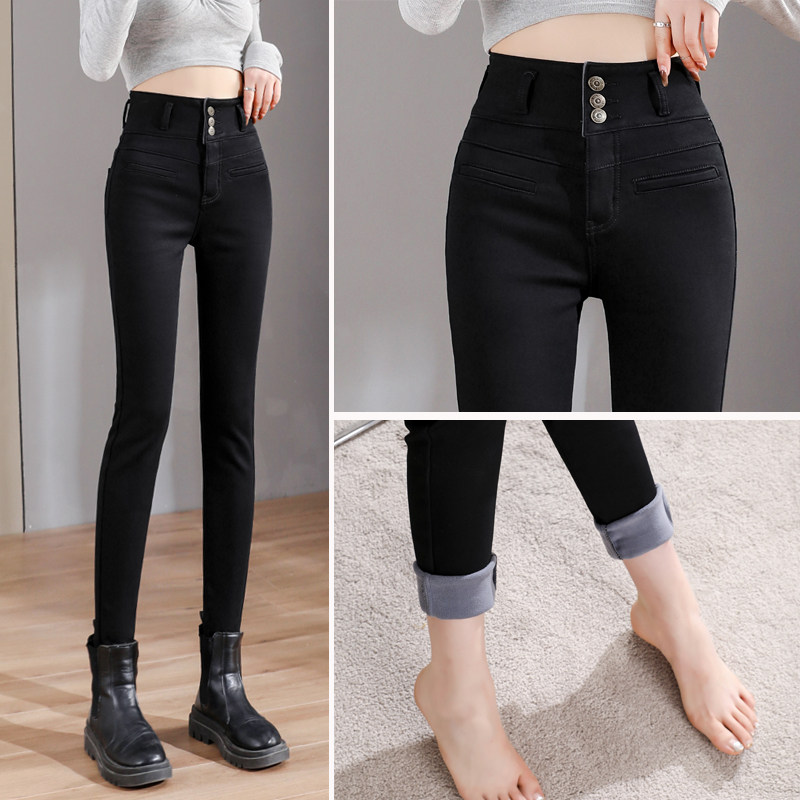 High Waist Plus Suede Jeans Women's Smoke Pipe Pants Winter New Korean Version Elastic slim Thickened Integrated Suede Pencil Pants