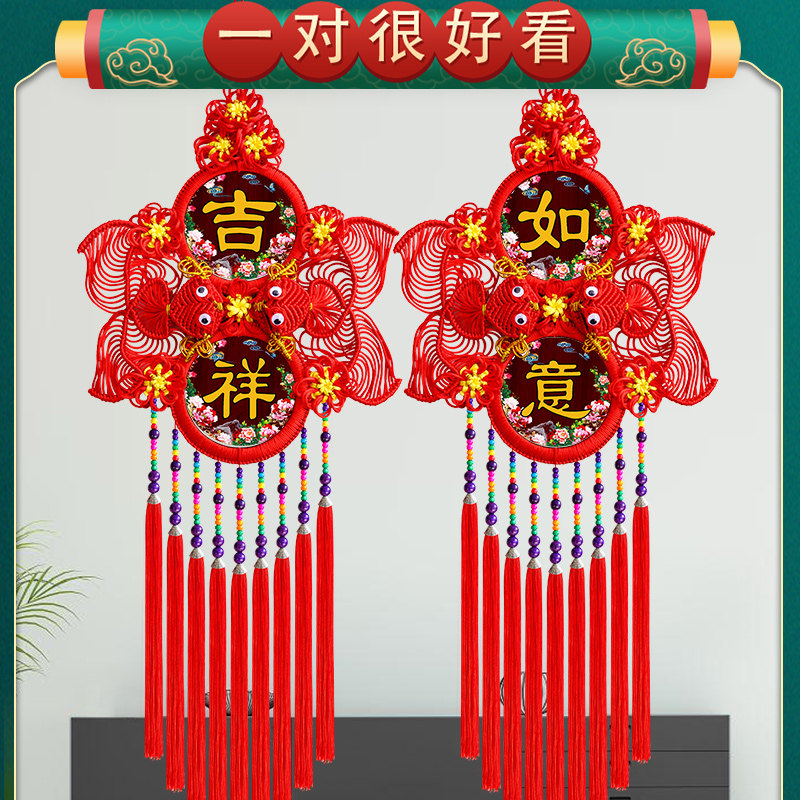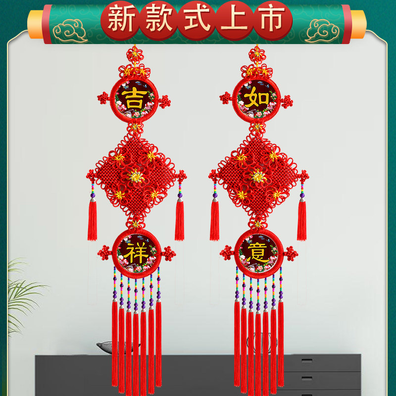 New Chinese knot decorated living room high-end Chinese style Qiao relocating high-end background wall auspicious New Year's Spring Festival hanging decoration couplets
