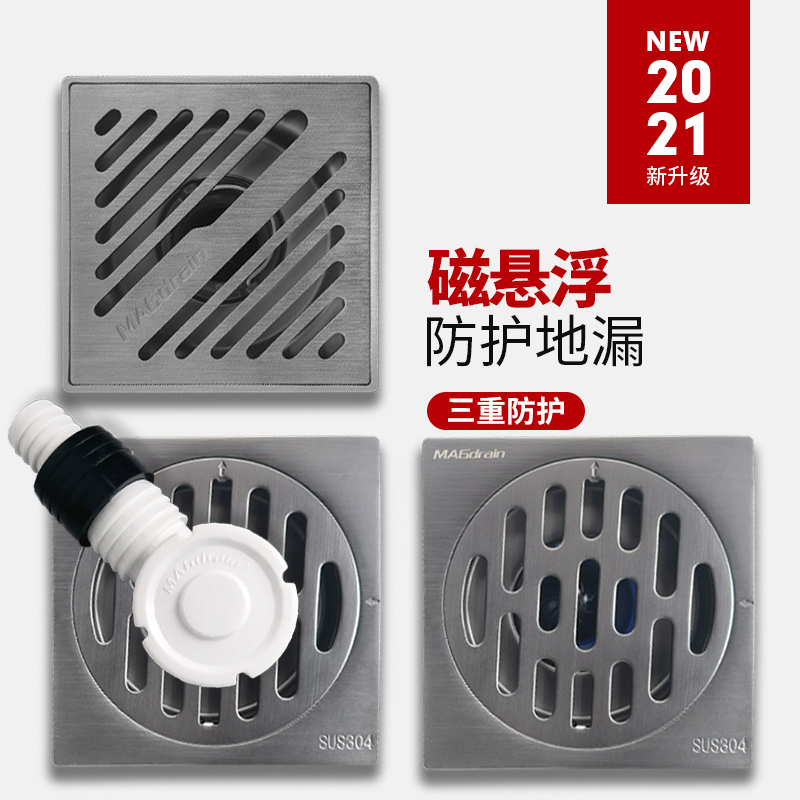 Wankang gun gray stainless steel washing machine floor drain bathroom shower balcony maglev deodorant insect-proof powder room