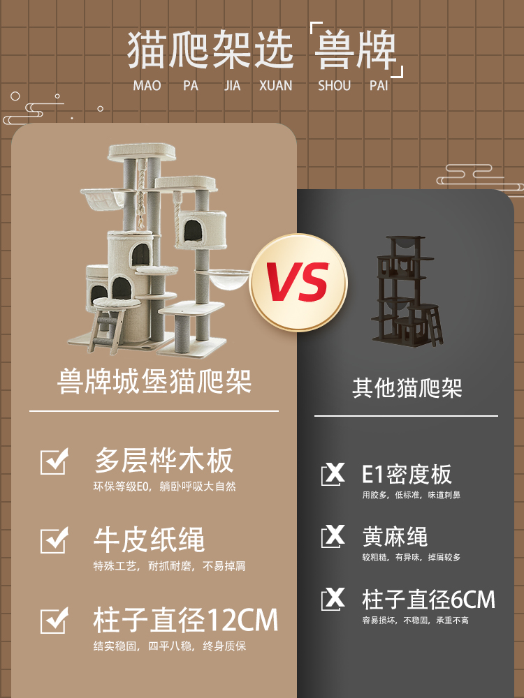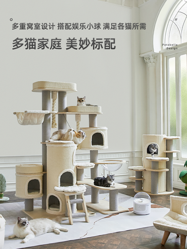Anterinary Castle Cat Crawling Ultra Large Deluxe Cat Tree Solid Wooden Cat Sherlock Space Cabin