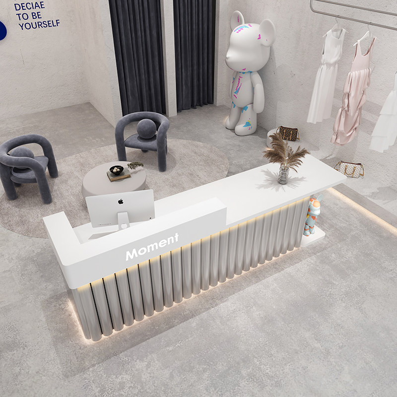Simple modern clothing store stainless steel bar cashier cashier beauty salon barber shop light luxury arc front desk