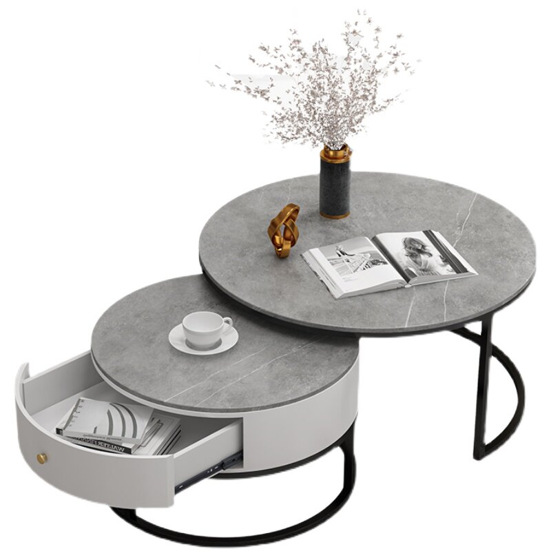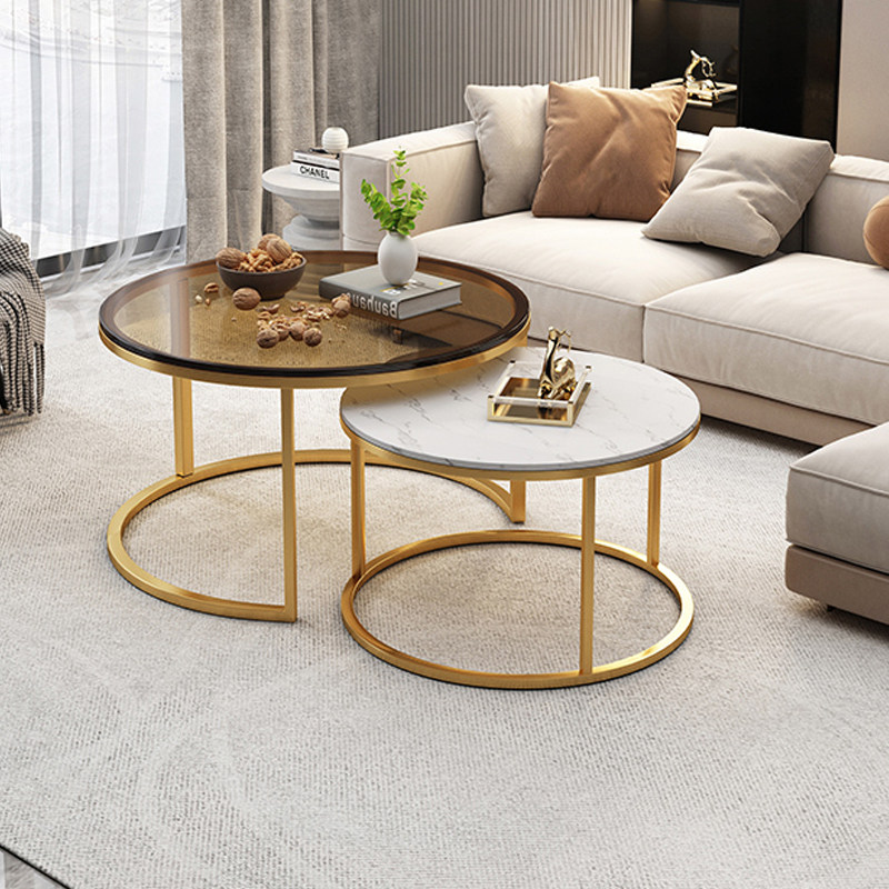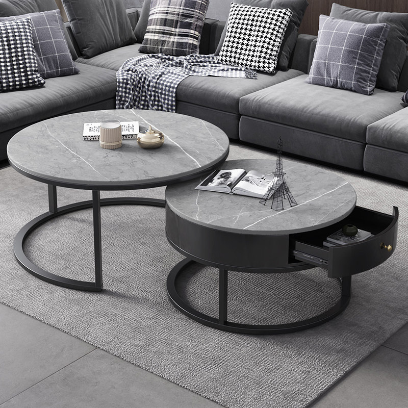 Tea table light extravagant minimalist with modern living room Home Small family Marble Round Tea Table Tennis Red Rock Plate Nordic Side a few