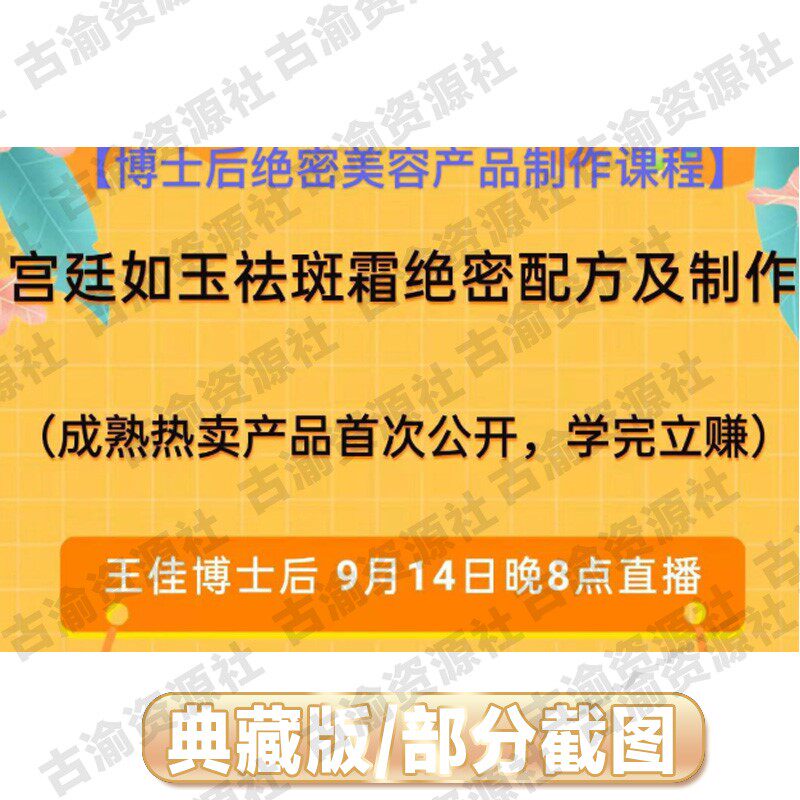 Dr. Wang Jia (postdoctoral top-secret beauty product making course) palace such as jade dispel spot cream and top-secret recipe