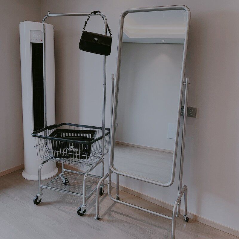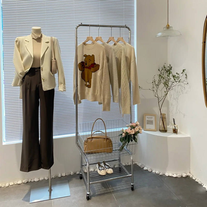 ins multi-function mobile hanger trolley landing net red clothing store display rack shopping cart clothes storage basket