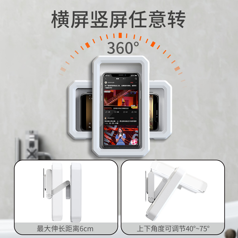 (retractable rotation) PZOZ bathroom waterproof mobile phone box bath watch TV lazy man bracket mobile phone rack toilet drama chasing artifact play toilet shower room hanging wall sticking wall
