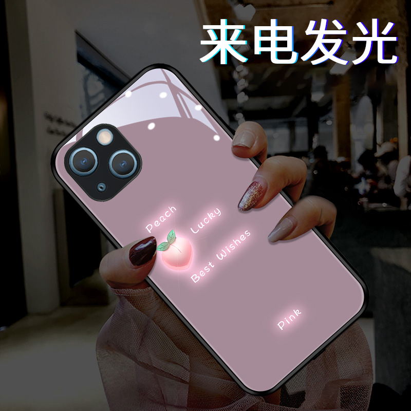 Purple peach for Apple 13 mobile phone protective case iPhone13promax new all-inclusive anti-fall 13pro women caller light 13mini glass simple and fresh