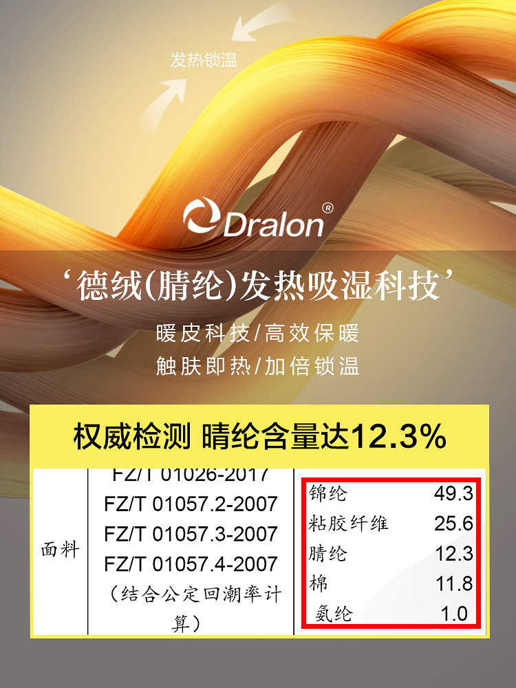 Polyamide fiber (nylon) 49 3% viscose fiber (viscose fiber) 25 6% Polyacrylic fiber (acrylic fiber) 12 3% cotton 11 8% polyurethane