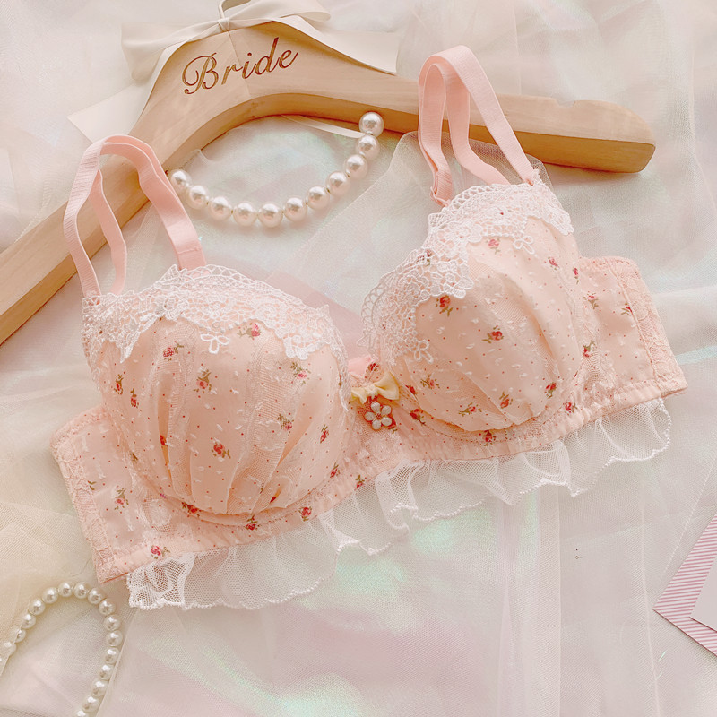 New pint sweet girl cute lingerie suit large size thin cup coalage comfortable with steel ring underwear big chest for small size