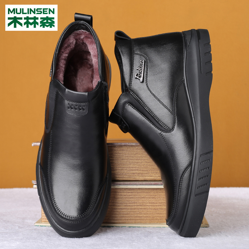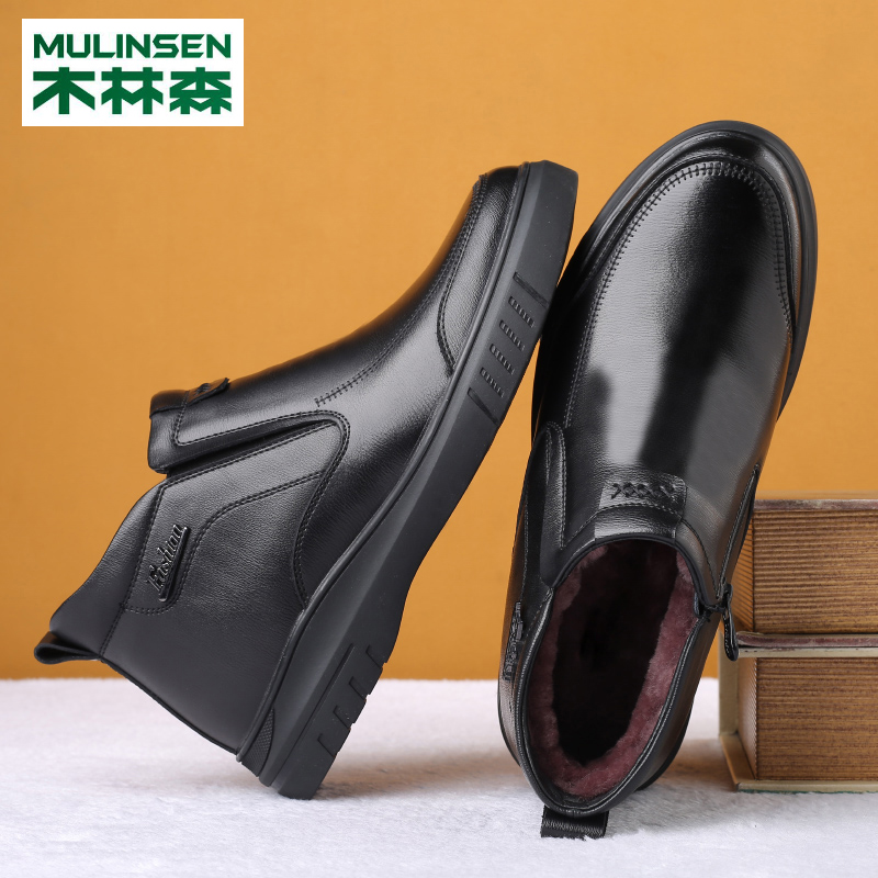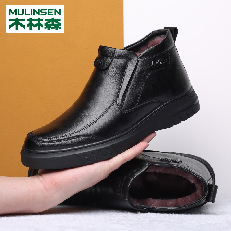 Mulinsen cotton shoes men's winter plus velvet thickened wool men's shoes genuine leather high-top dad shoes warm and cold-proof cotton leather shoes