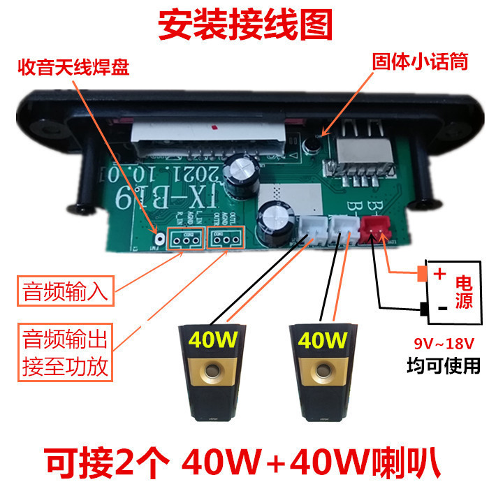 12V with power amplifier 40WMP3 decoding board color screen hands-free call motherboard with Bluetooth stereo player