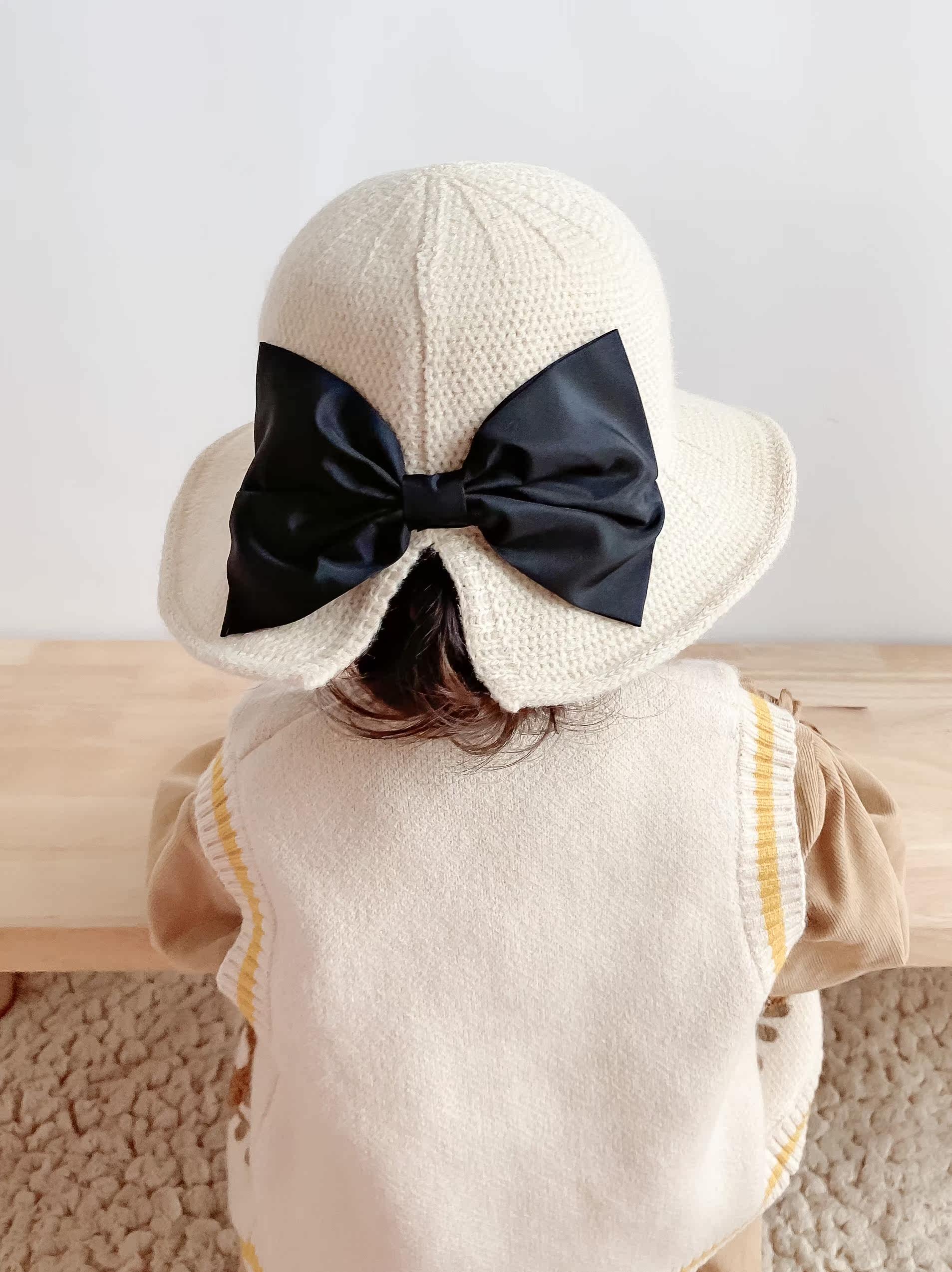 Black Big Bow Knot Autumn and Winter Slit Pot Hat