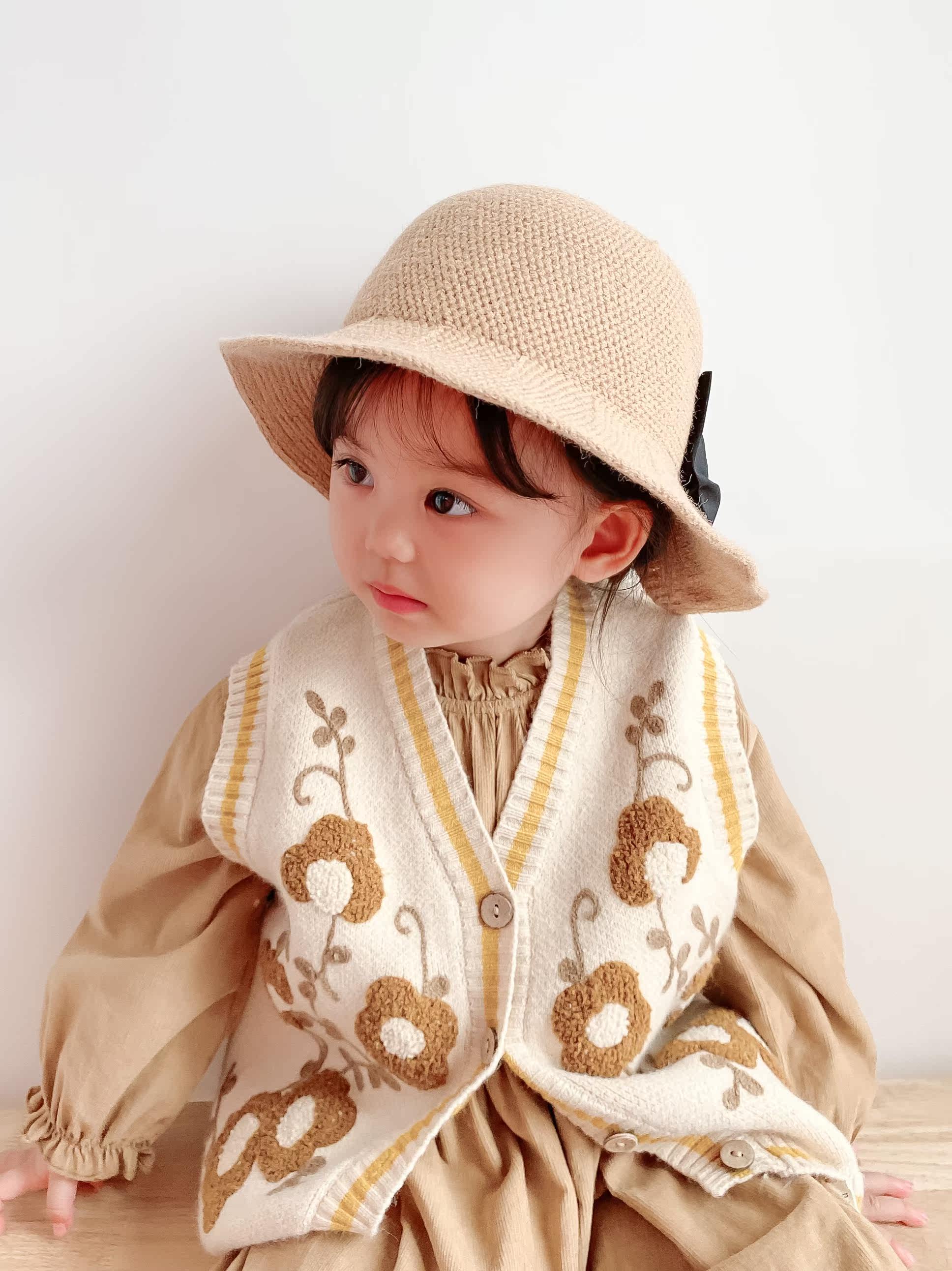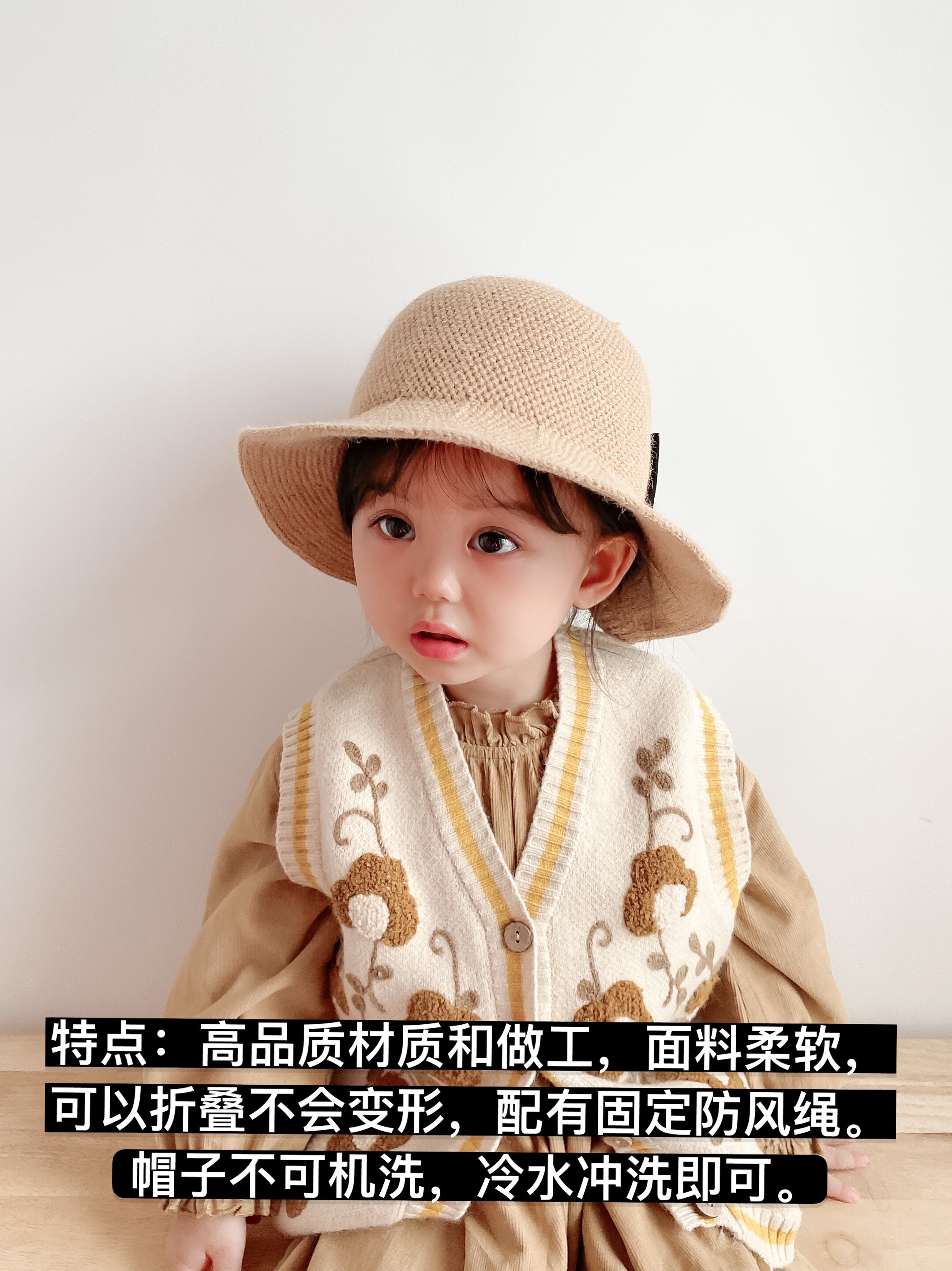 Children's basin hat autumn and winter ins new female baby fisherman hat travel warm princess hat bow girl hat 3 years old
