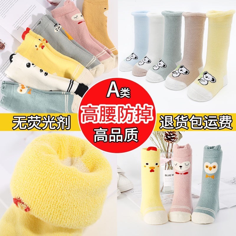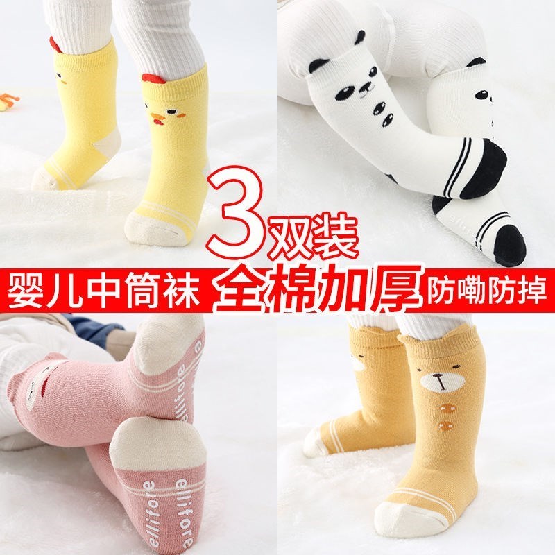 One-year-old baby cotton socks baby mid-tube socks autumn and winter thickened and velvet 0-1-3 years old girls and boys small