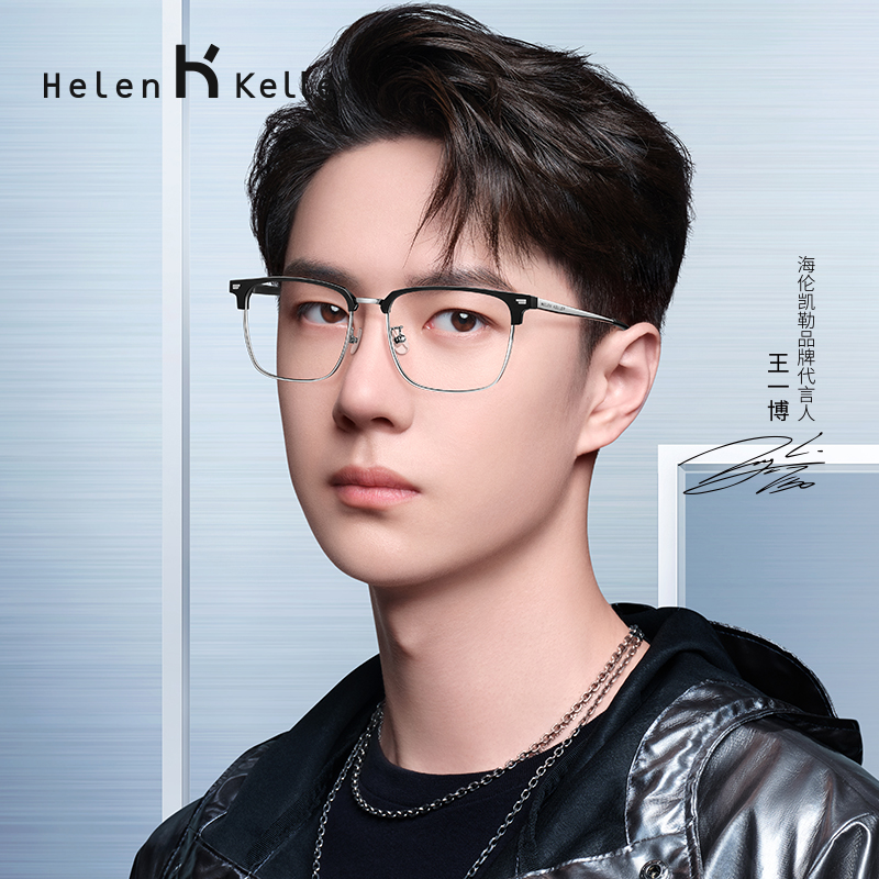 Helen Keller glasses frame men's myopia glasses eye eyebrow line half frame large frame box Wang Yibo same glasses frame