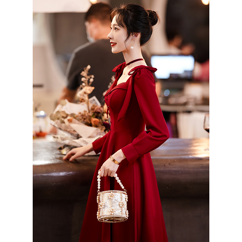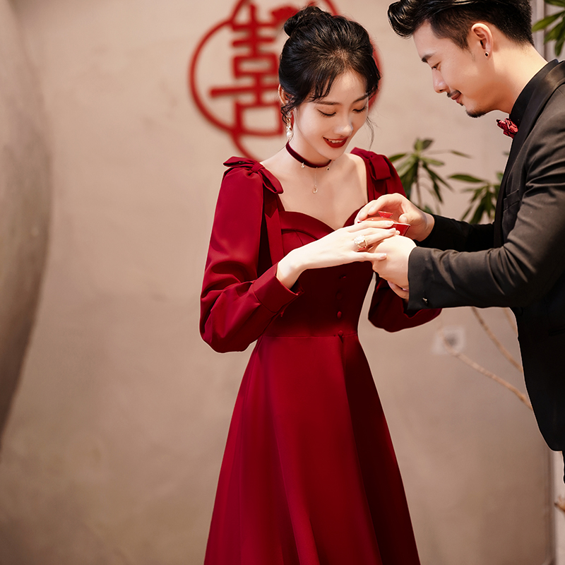 Toast to the bride, small fall winter long sleeve fugitive princess engaged foreign dress red back door gown dress winter