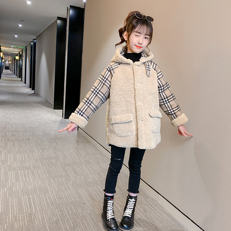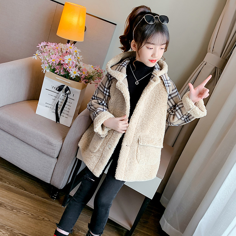 Girl Lamb Wool Jacket 2022 Autumn Winter New Foreign Pie Gush Suede Thickened Children's Clothing Trendy Children's Blouse
