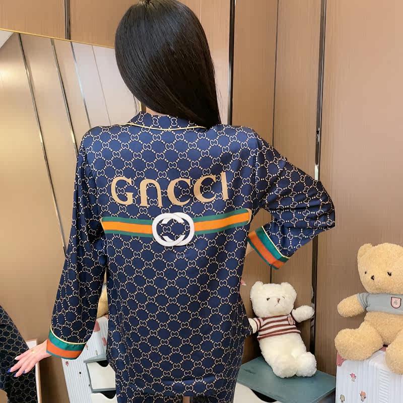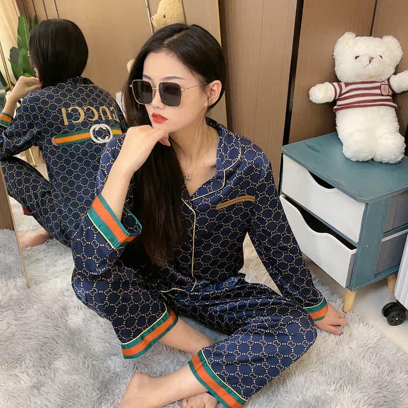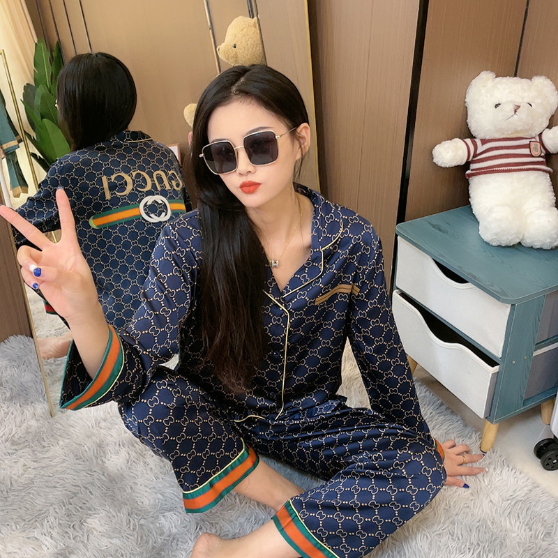 Summer ice silk pajamas couples long-sleeved trousers can be worn outside 2022 spring and autumn new summer high-end sense day