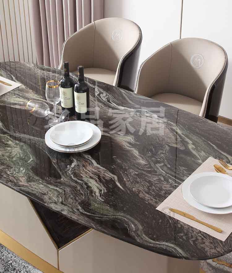 Mushang Furniture Vuitton MV Italian Light Luxury Marble Dining Table Rectangular Large House Multi-person Dining Table