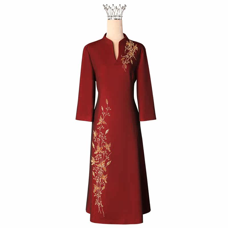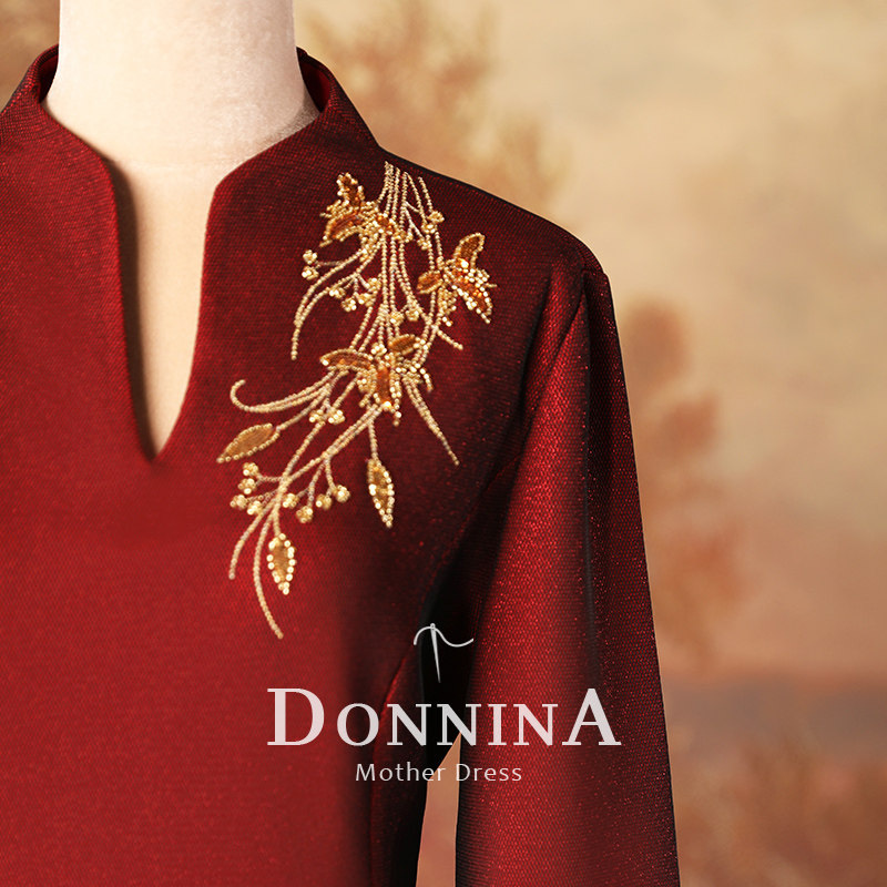 Donina's "Ye Hua" mother's wedding banquet dress noble long-sleeved embroidery wedding mother-in-law happy mother-in-law cheongsam