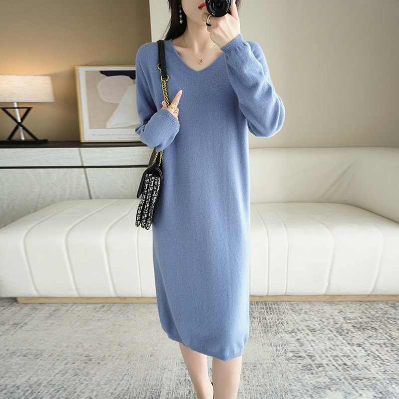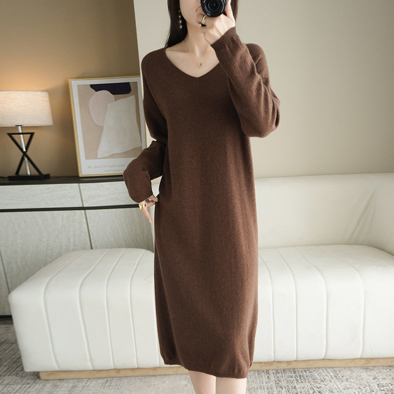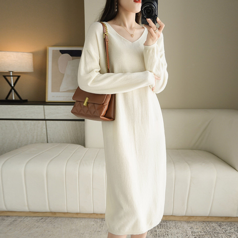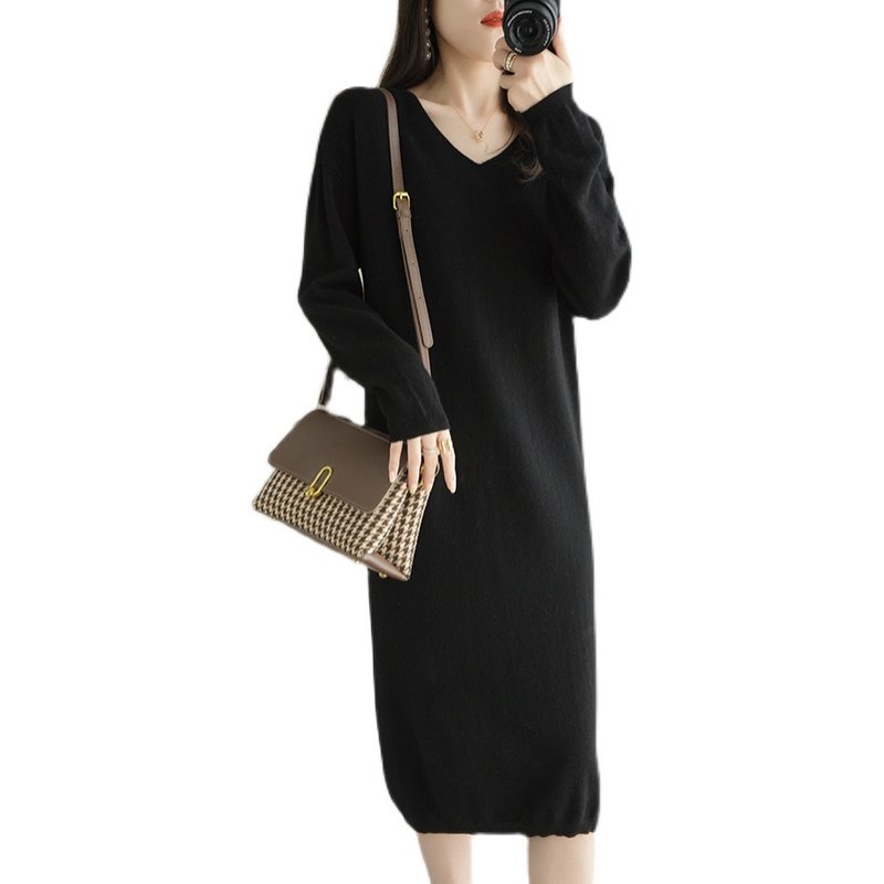 2021 Autumn Winter New High-end Dress Cashmere Dress External Wear Wool Matching Coat With Undercoat Mid sweater dress in long version