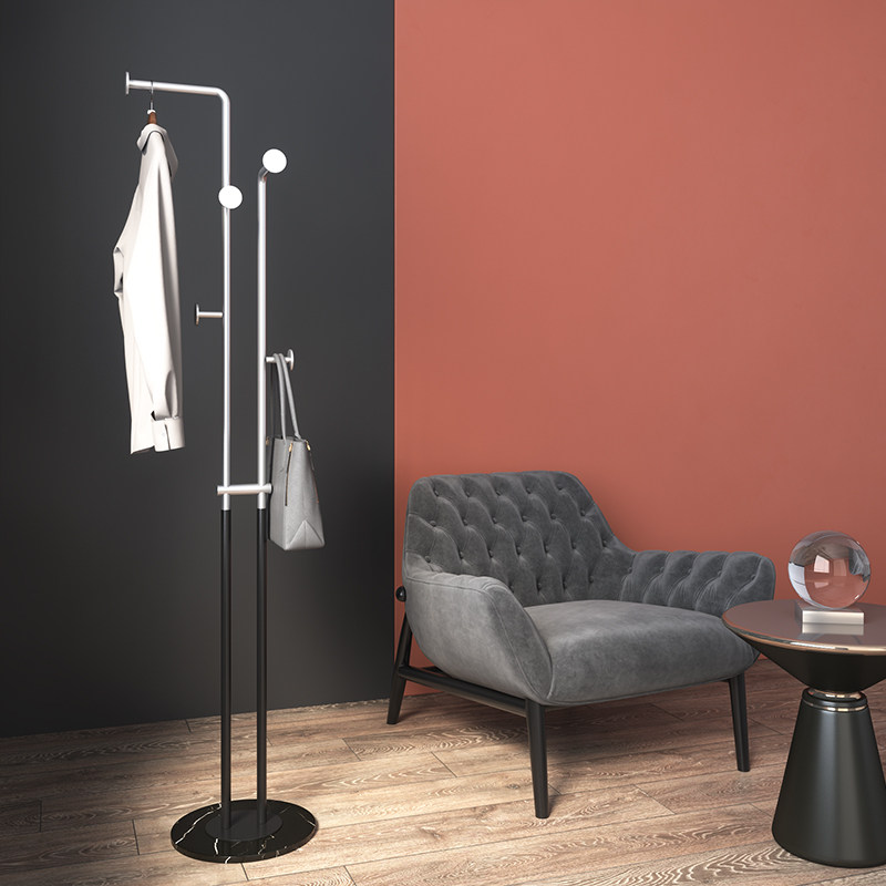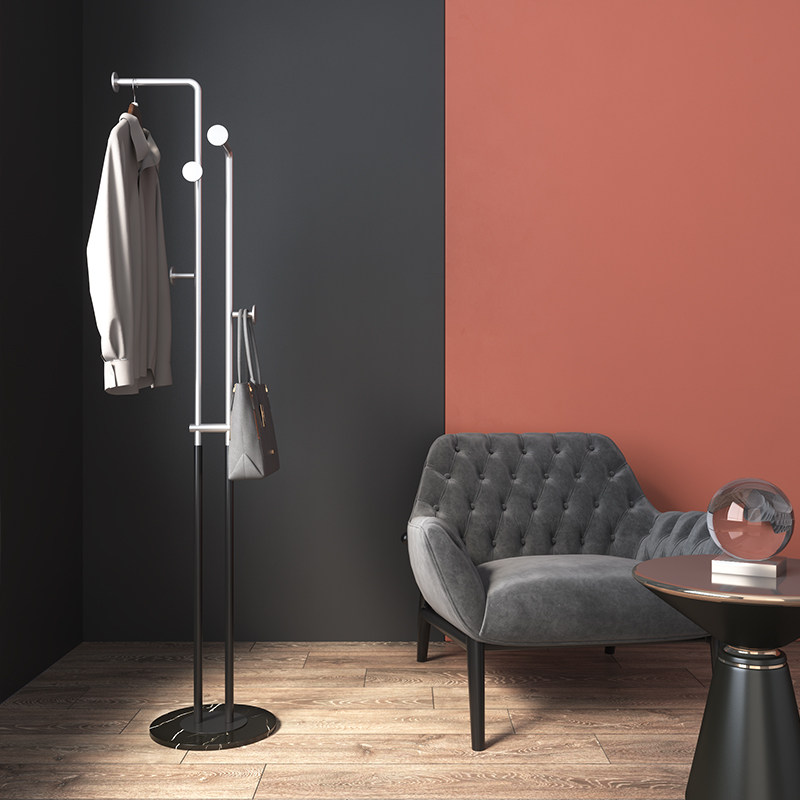 Nordic designer marble double-tube coat rack simple post-modern light luxury bedroom floor-standing clothes rack