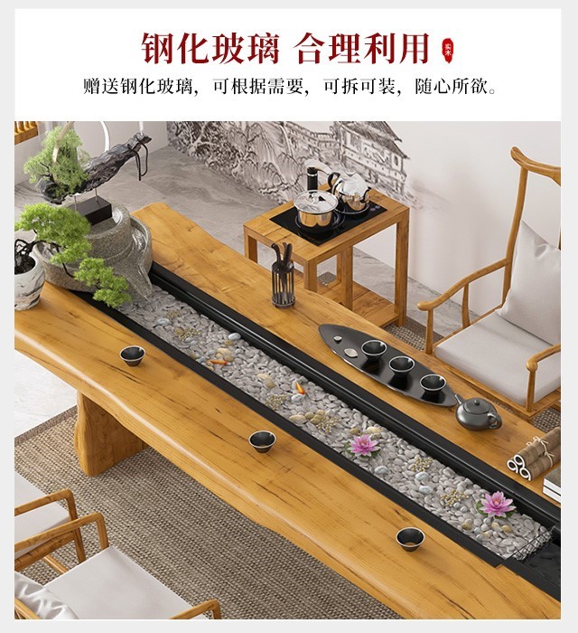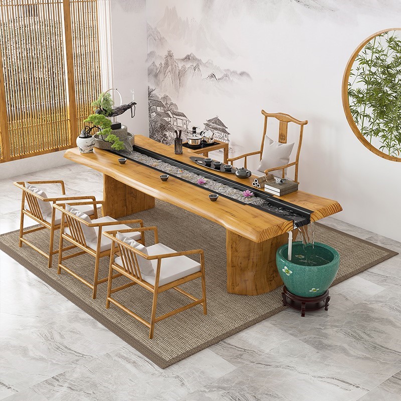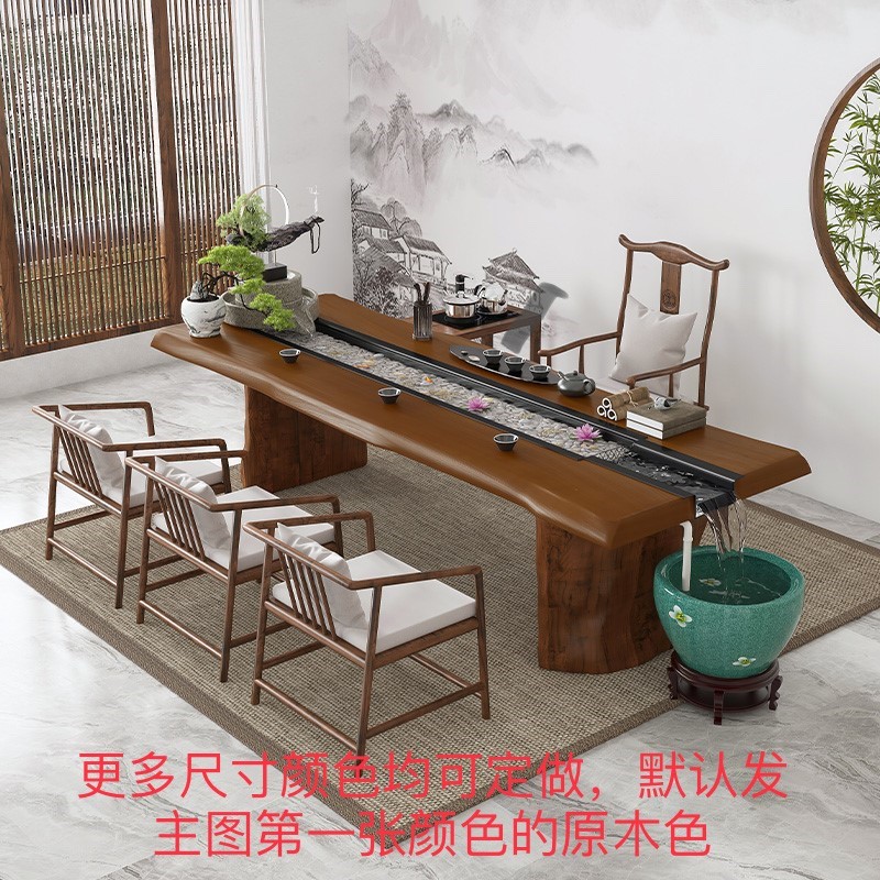 Office Zen for Fish Farming Landscape Solid Wood Large Plate New Chinese Tea Table And Chairs Combined Cycle Flowing Water Tea Table And Chairs