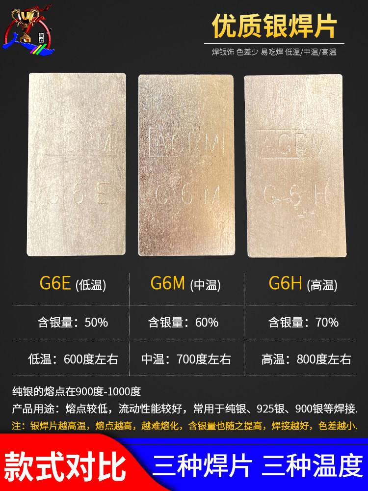One piece at low temperature (about 19 grams), one piece at medium temperature (about 19 grams), one piece at high temperature (about 19 grams), one half piece at low temperature (about 0.9 grams), a bottle of silver solder powder (domestic)