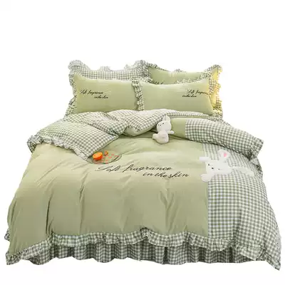 Non-Pilling, non-fading Korean thick abrasive bed skirt four-piece set of cute rabbit rabbit three-dimensional embroidery quilt cover sheet