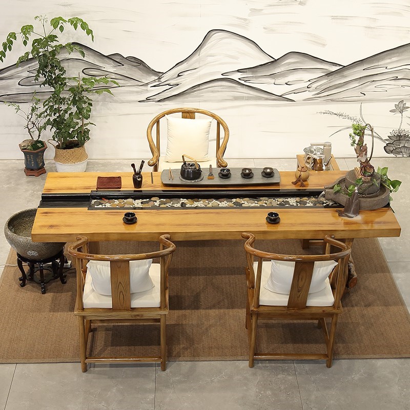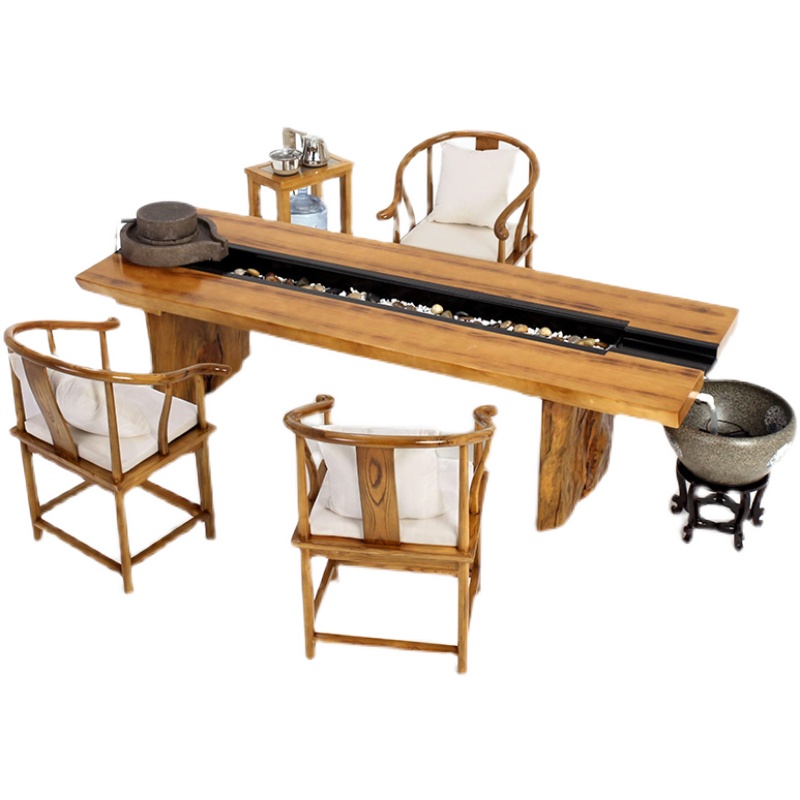New Chinese Gongfu Tea Several log long table tea room Zen Flowing Water Bacon Fish Tea Terrace Landscape Creative Tea Table Chair Combination