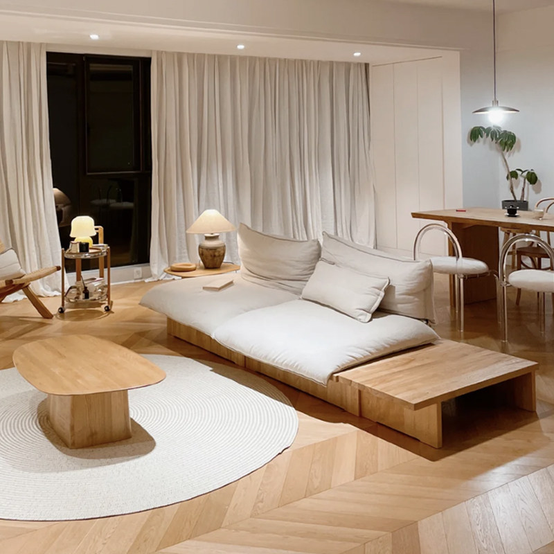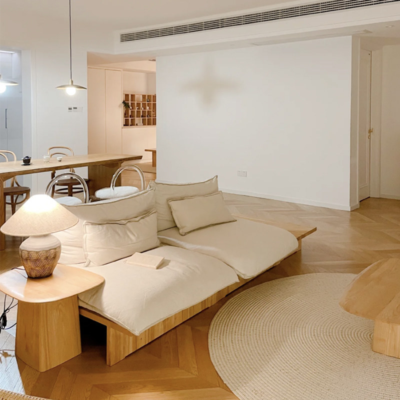 Nordic Solid Wood Sofa Day Style SILENT WIND LIVING ROOM CLOTH ART TRIO SOFA SMALL HOUSEHOLD TYPE NET RED double sofa