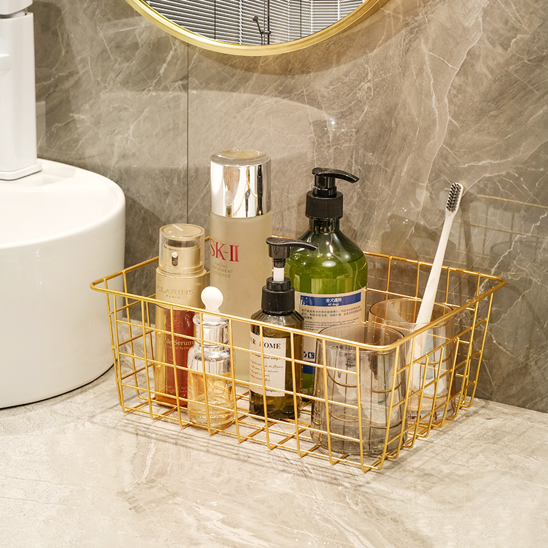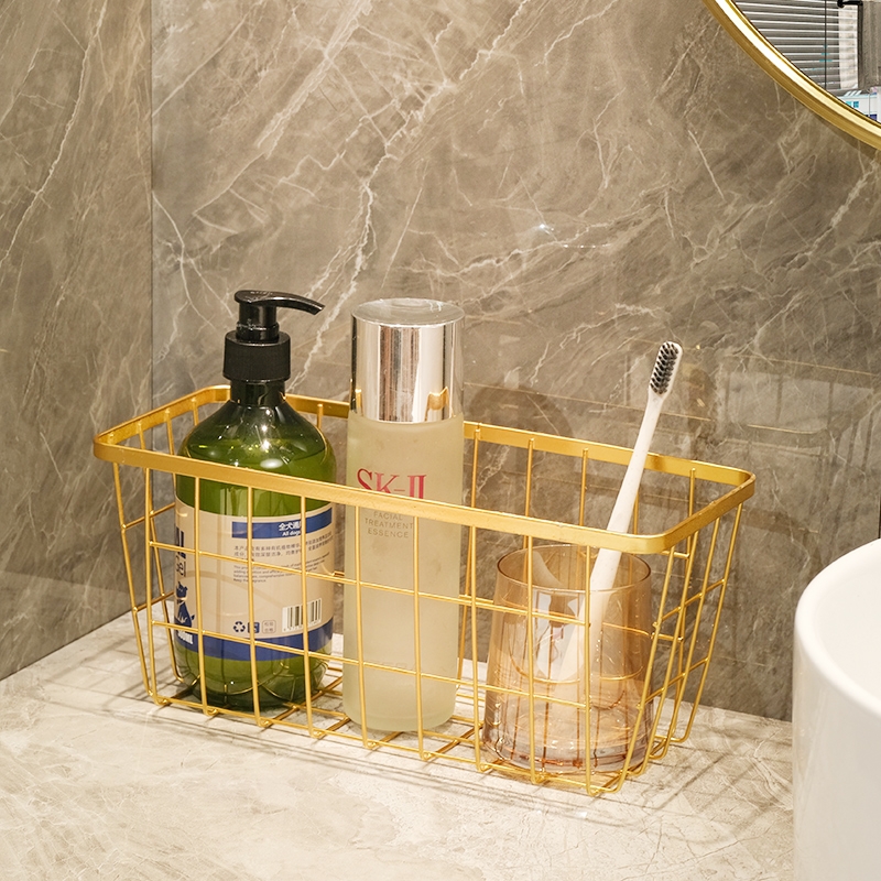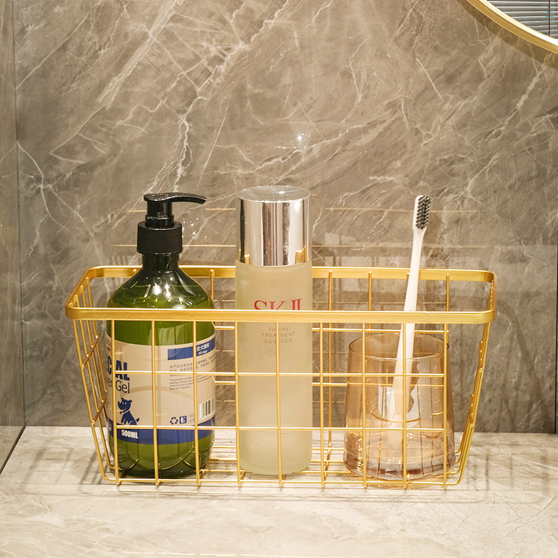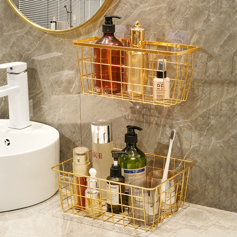 Bathroom powder room shelf toilet toilet washstand free punching wall hanging wall storage shelf light luxury basket