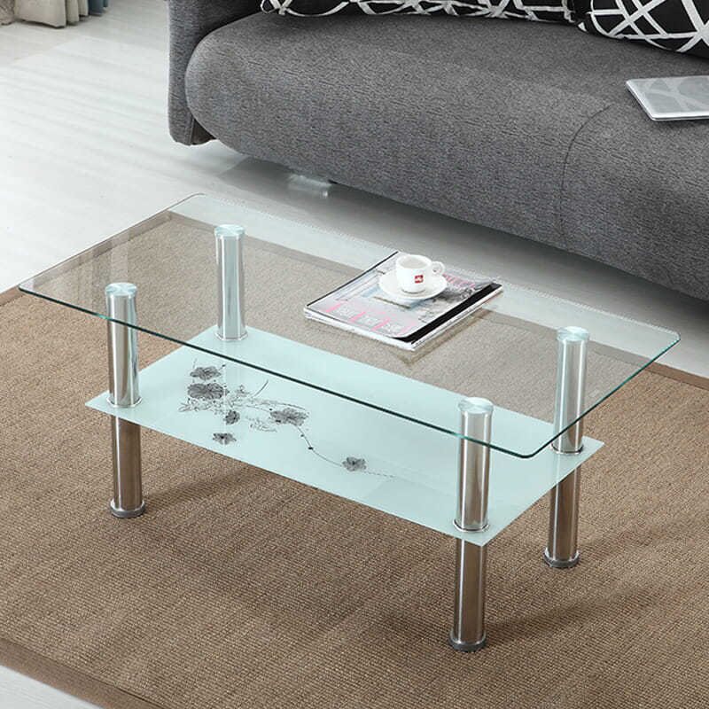 Steel-made glass tea table small size small family type home living room minimalist modern office positive rectangular idea